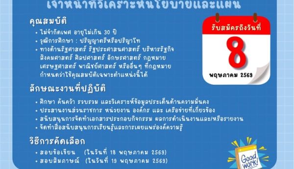 ประกาศรับสมัครจ้างพนักงานจ้างเหมาบริการ ตำแหน่ง เจ้าหน้าที่วิเคราะห์นโยบายและแผน