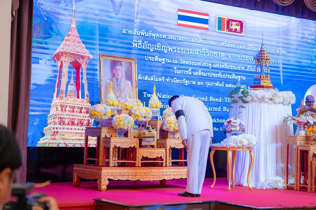 แห่งชาติ พร้อมด้วยคณะผู้บริหาร ข้าราชการ และเจ้าหน้าที่สำนักงานสภาความมั่นคงแห่งชาติ เข้าร่วมพิธีอัญเชิญพระบรมสารีริกธาตุจากประเทศศรีลังกามาประดิษฐานเป็นการชั่วคราว ณ ตึกสันติไมตรี (หลังนอก) ทำเนียบรัฐบาล ก่อนนำไปประดิษฐานเป็นการถาวรที่วัดพระธาตุวรมหาวิหาร จังหวัดนครศรีธรรมราช