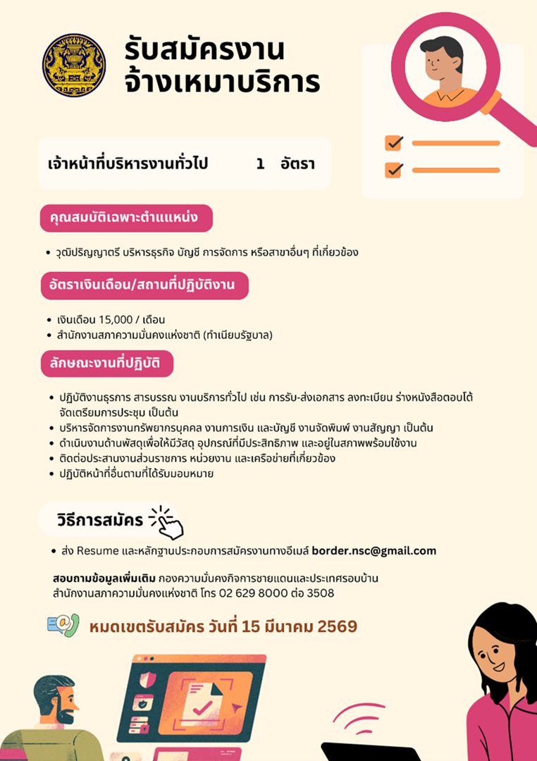 รับสมัครพนักงานจ้างเหมาบริการในตำแหน่ง เจ้าหน้าที่บริหารงานทั่วไป จำนวน 1 อัตรา