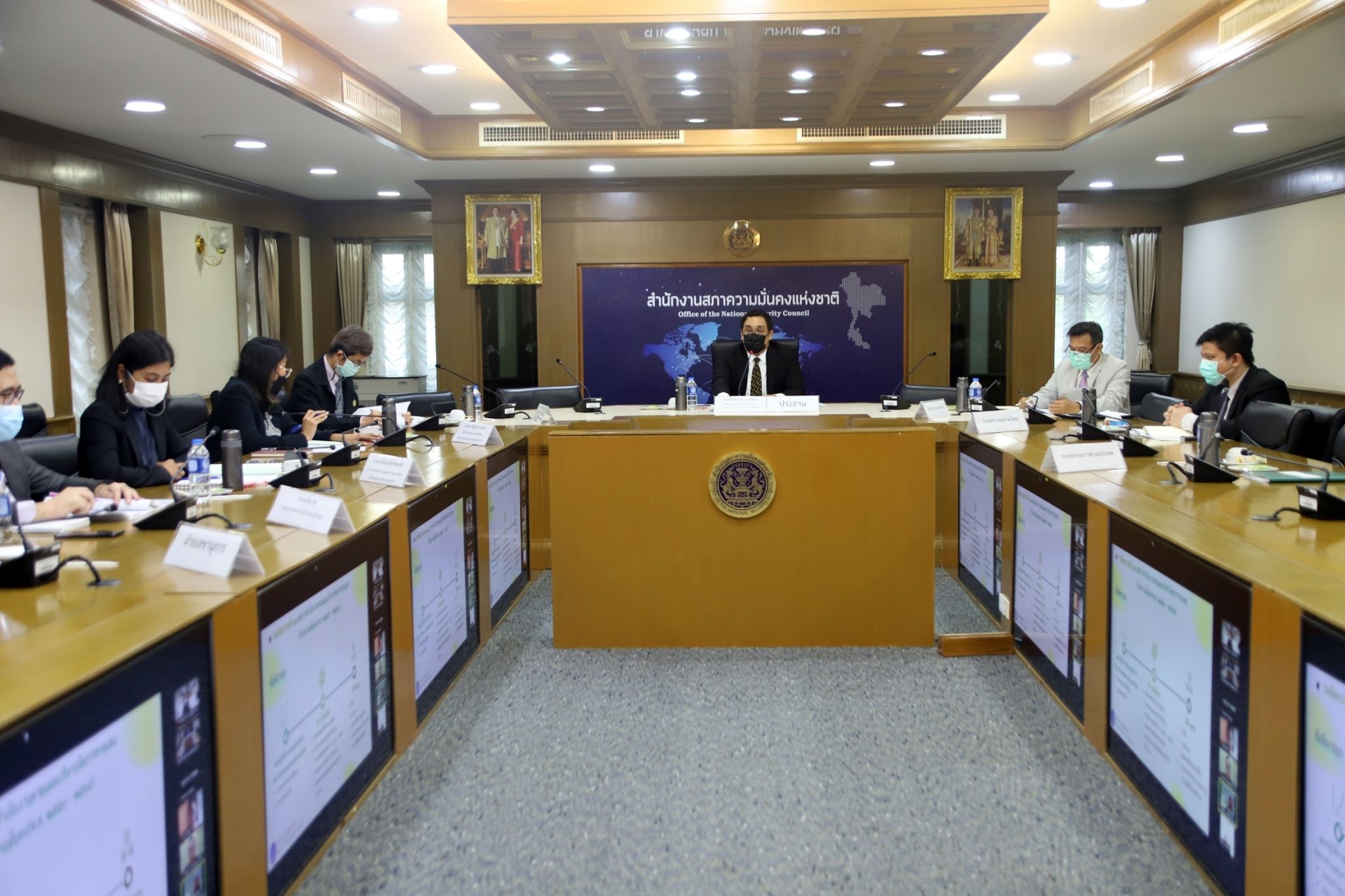 เมื่อวันที่ ๓ กุมภาพันธ์ ๒๕๖๕ นายสิทธินันท์ มานิตกุล ที่ปรึกษาด้านการประสานกิจการความมั่นคง รักษาราชการแทน รองเลขาธิการสภาความมั่นคงแห่งชาติ เป็นประธาน ในการประชุมคณะอนุกรรมการเฉพาะกิจจัดทำแผนปฏิบัติการด้านการบริหารจัดการชายแดนด้านความมั่นคง (พ.ศ. ๒๕๖๖ – ๒๕๗๐) ณ ห้องวิจิตรวาทการ สำนักงานสภาความมั่นคงแห่งชาติ และระบบประชุมทางไกล โดยมีอนุกรรมการจากส่วนราชการต่าง ๆ เข้าร่วมประชุม อาทิ กระทรวงมหาดไทย กระทรวงการต่างประเทศ กระทรวงแรงงาน กระทรวงสาธารณสุข กระทรวงเกษตรและสหกรณ์ โดยที่ประชุมมีวาระเพื่อทราบจำนวน ๒ เรื่อง ได้แก่ ๑) ความคืบหน้าในการจัดทำนโยบายและแผนระดับชาติว่าด้วยความมั่นคงแห่งชาติ (พ.ศ. ๒๕๖๖ – ๒๕๗๐) และ ๒) ผลการดำเนินงานของแผนบริหารจัดการชายแดนด้านความมั่นคง (พ.ศ. ๒๕๕๙ – ๒๕๖๕) และมีวาระเพื่อพิจารณาจำนวน ๑ เรื่อง คือ การกำหนดเป้าหมาย ตัวชี้สัด ค่าเป้าหมาย ผลสัมฤทธิ์ระยะ ๕ ปี รวมถึงกลยุทธ์ ในประเด็นการักษาความมั่นคงและผลประโยชน์ของชาติในพื้นที่ชายแดน ในนโยบายและแผนระดับชาติว่าด้วยความมั่นคงแห่งชาติ (พ.ศ. ๒๕๖๖ – ๒๕๗๐) ซึ่งที่ประชุมได้มีมติเห็นชอบในหลักการต่อข้อเสนอในร่างนโยบายและแผนระดับชาติว่าด้วยความมั่นคงแห่งชาติ (พ.ศ. ๒๕๖๖ – ๒๕๗๐) ของ สมช. ทั้งนี้ ให้พิจารณาข้อคิดเห็นตามที่คณะอนุกรรมการฯ ได้เสนอในที่ประชุม