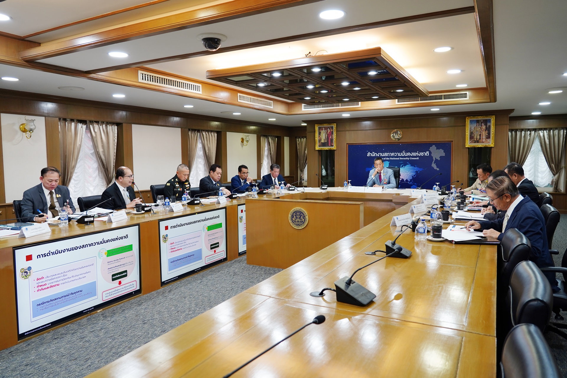 นายเศรษฐา ทวีสิน นายกรัฐมนตรี/ประธานสภาความมั่นคงแห่งชาติ ได้เป็นประธานการประชุมสภาความมั่นคงแห่งชาติ ครั้งที่ ๒/๒๕๖๖ เมื่อวันที่ ๒ พฤศจิกายน ๒๕๖๖ ณ ห้องประชุมวิจิตรวาทการ สำนักงานสภาความมั่นคงแห่งชาติ โดยที่ประชุมได้รับทราบการขับเคลื่อนงานด้านความมั่นคงในภาพรวมของประเทศ ซึ่งมีนโยบายและแผนระดับชาติว่าด้วยความมั่นคงแห่งชาติ (พ.ศ. ๒๕๖๖ – ๒๕๗๐) เป็นแผนหลักในการป้องกัน แจ้งเตือน แก้ไข หรือระงับยับยั้งภัยคุกคามที่มีผลกระทบและความเสี่ยงสูงในระยะ ๕ ปี โดยขับเคลื่อนควบคู่ไปพร้อมกับแผนแม่บทภายใต้ยุทธศาสตร์ชาติ ประเด็นความมั่นคงและนโยบายรัฐบาล