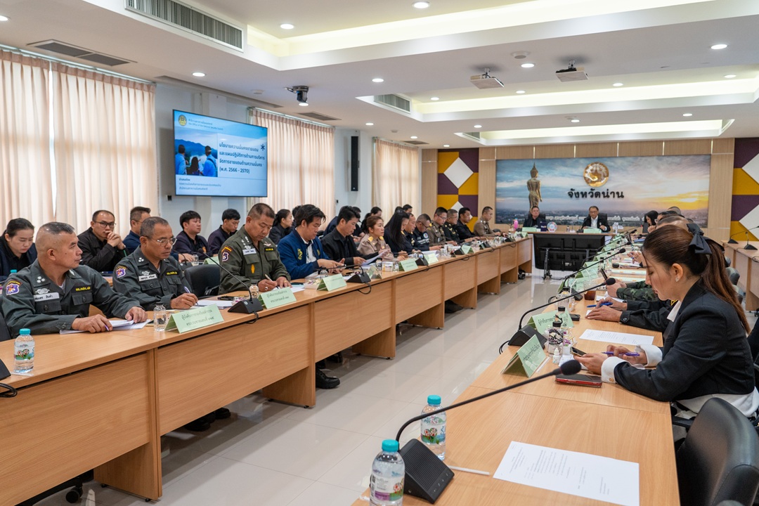 การประชุมส่วนราชการที่เกี่ยวข้องเพื่อประเมินสถานการณ์ความมั่นคงและติดตามการบริหารจัดการชายแดนไทย – ลาว และการตรวจสภาพพื้นที่บริเวณชายแดนไทย – ลาว ณ จังหวัดน่าน
