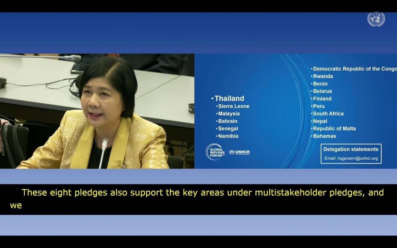 การประชุมเวทีผู้ลี้ภัยโลก (Global Refugee Forum : GRF) ครั้งที่ ๒ ระหว่างวันที่ ๑๓ – ๑๕ ธันวาคม ๒๕๖๖ ณ นครเจนีวา สมาพันธรัฐสวิส โดยนางพันทิพา เอี่ยมสุทธา เอกะโรหิต รองปลัดกระทรวงการต่างประเทศ ในฐานะหัวหน้าคณะผู้แทนไทย และผู้แทนหน่วยงานที่เกี่ยวข้องประกอบด้วย นางสาวอัญชลี ดวงแก้ว ผู้อำนวยการกองความมั่นคงภายในประเทศ สำนักงานสภาความมั่นคงแห่งชาติ นางสาวจิตวิภา เบญจศีล ผู้อำนวยการกองการสังคม กรมองค์การระหว่างประเทศ กระทรวงการต่างประเทศ และนายทรงกลด ขาวแจ้ง ผู้แทนกระทรวงมหาดไทย เข้าร่วมเป็นองค์ประกอบของหน่วยงานไทยในการประชุม
