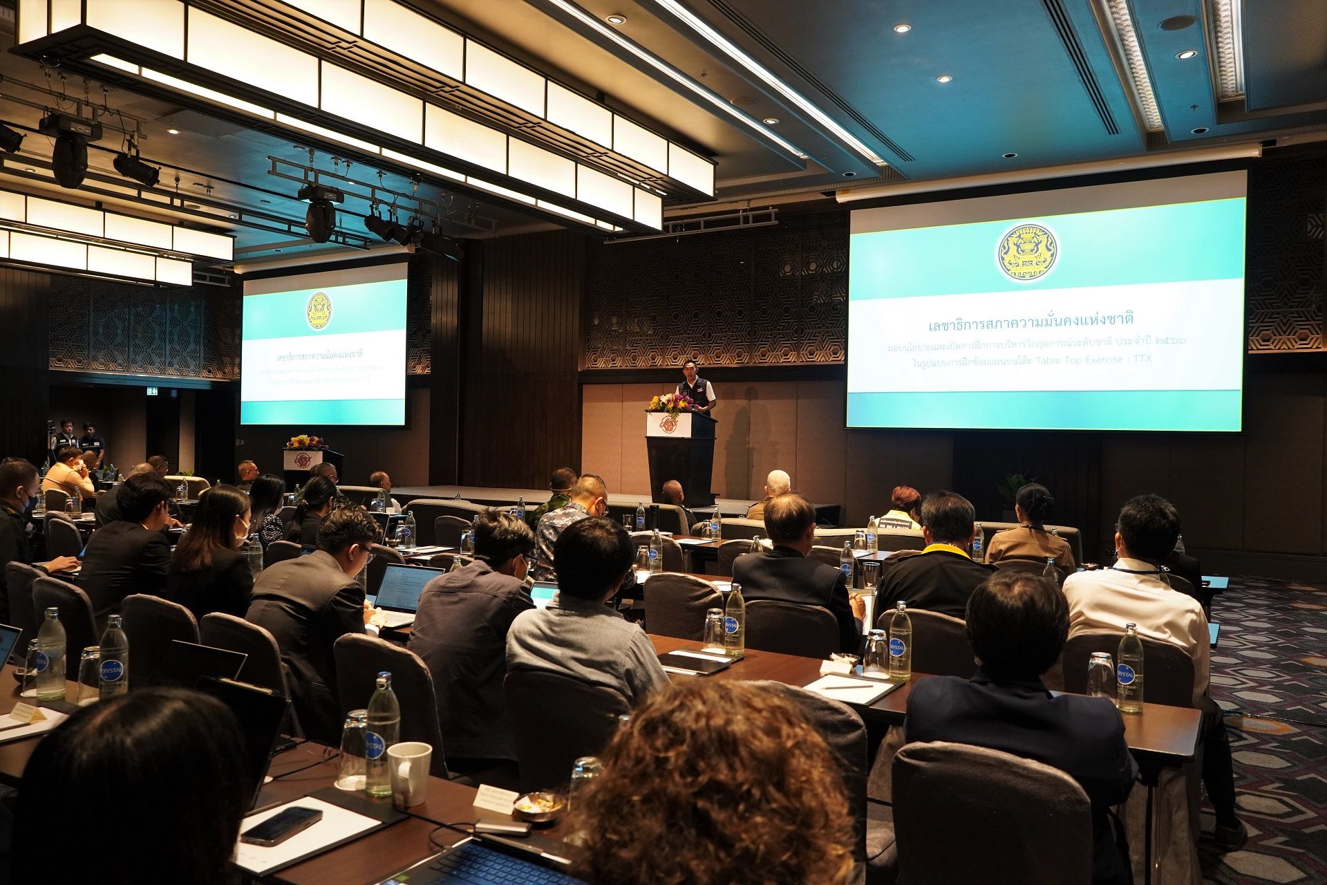 เมื่อวันที่ ๒๔ – ๒๖ กรกฎาคม ๒๕๖๖ กองความมั่นคงด้านการเตรียมพร้อมและการป้องกันประเทศ สำนักงานสภาความมั่นคงแห่งชาติ ได้จัดการฝึกการบริหารวิกฤตการณ์ระดับชาติ ประจำปี ๒๕๖๖ ในรูปแบบการฝึกซ้อมแผนบนโต๊ะ (Table Top Exercise : TTX) ณ โรงแรมเจดับบลิว แมริออท ถนนสุขุมวิท กรุงเทพฯ โดยมี พลเอกสุพจน์ มาลานิยม เลขาธิการสภาความมั่นคงแห่งชาติ เป็นประธาน