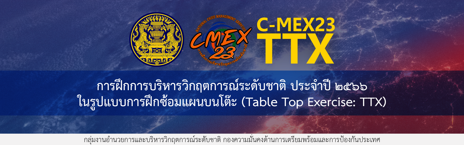 โดยการฝึกการบริหารวิกฤตการณ์ระดับชาติ ประจำปี ๒๕๖๖ ในรูปแบบการฝึกซ้อมแผนบนโต๊ะ (Table Top Exercise : TTX) เป็นการบูรณาการประเด็นการฝึกร่วมกันระหว่างประเด็นการฝึกต่อต้านการก่อการร้าย ประเด็นการฝึกบริหารจัดการภัยความมั่นคงไซเบอร์ และประเด็นการฝึกบริหารวิกฤตการณ์ด้านพลังงานโดยมุ่งหวังให้หน่วยงานที่เกี่ยวข้องได้มีการทดสอบการยกระดับการบริหารจัดการวิกฤตการณ์ ในการรับมือ ตอบโต้ และบรรเทาผลกระทบที่เกิดขึ้น ตลอดจนการทดสอบศักยภาพของหน่วยงานที่เกี่ยวข้องและระบบบัญชาการเหตุการณ์ระดับชาติในการบริหารสถานการณ์วิกฤต รวมถึงการสื่อสารเชิงยุทธศาสตร์และการสื่อสารในภาวะวิกฤต