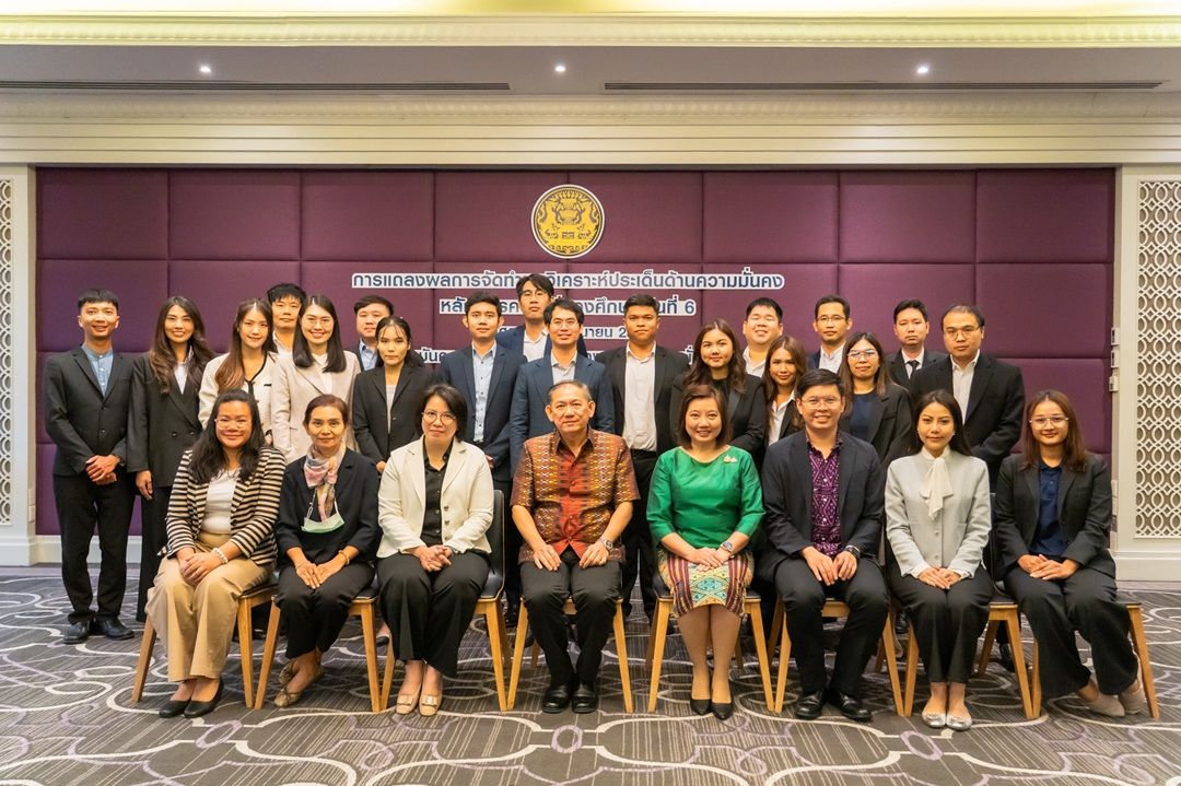 เมื่อวันศุกร์ที่ ๒๐ มิถุนายน ๒๕๖๘ สถาบันความมั่นคงศึกษา สำนักงานสภาความมั่นคงแห่งชาติได้จัดกิจกรรมการแถลงผลบทวิเคราะห์ประเด็นด้านความมั่นคงของผู้เข้ารับการอบรมหลักสูตรความมั่นคงศึกษา (ระดับต้น) รุ่นที่ ๖ ณ ห้องประชุมกมลมาศ ชั้น ๖ โรงแรมเดอะ สุโกศล กรุงเทพฯ โดยมีนายฉัตรชัย บางชวด เลขาธิการสภาความมั่นคงแห่งชาติ เป็นประธานในพิธี พร้อมด้วยผู้บริหารและผู้ทรงคุณวุฒิจากสำนักงานสภาความมั่นคงแห่งชาติ และหน่วยงานต้นสังกัดของผู้เข้ารับการฝึกอบรมฯ ให้เกียรติร่วมรับฟังการนำเสนอ