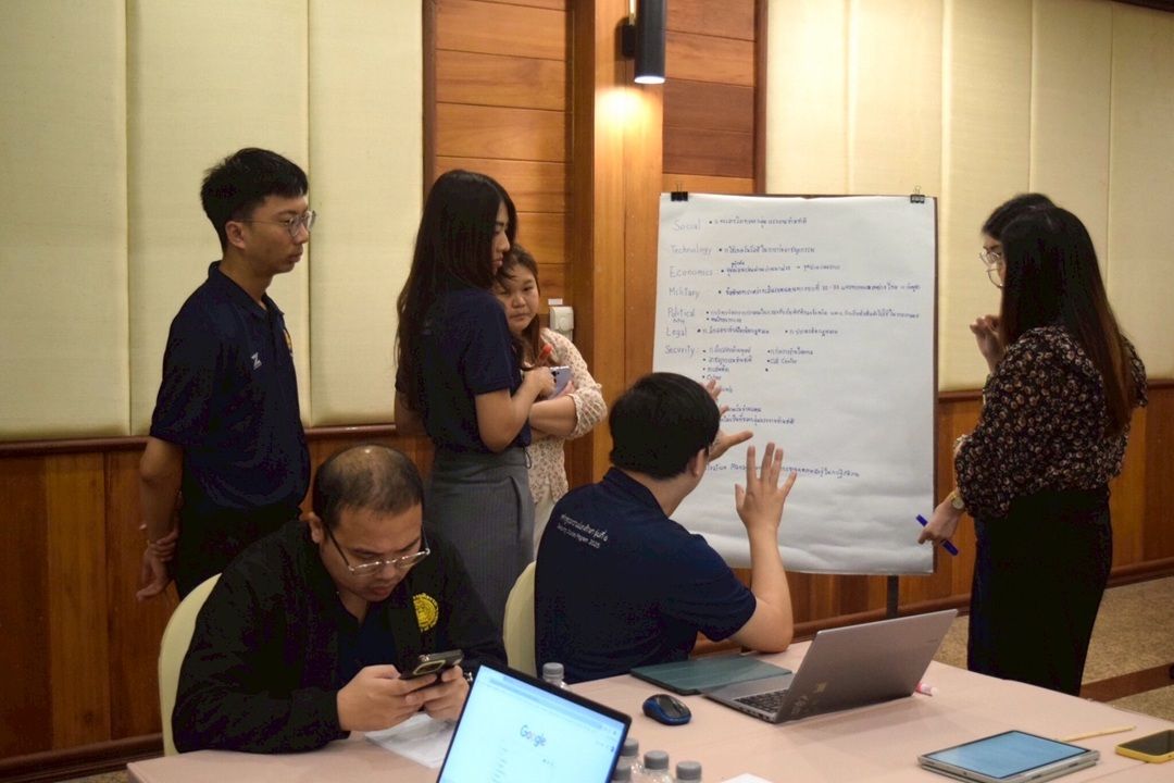 โดย สมศ. ได้จัดกิจกรรมเชิงปฏิบัติการ (Workshop) ให้แก่ผู้เข้ารับการศึกษา โดยมุ่งเน้นการเสริมสร้างทักษะในการวิเคราะห์สถานการณ์และจัดทำข้อเสนอเชิงนโยบายด้านความมั่นคง ผ่านการใช้เครื่องมือและเทคนิคด้านการวิเคราะห์สถานการณ์ ด้วยการฝึกใช้เทคนิค Risk Analysis เพื่อประเมินภัยคุกคาม ความเปราะบาง และโอกาสที่อาจเกิดขึ้นในพื้นที่จังหวัดชายแดนอย่างเป็นระบบ จากนั้นผู้เข้าอบรมได้ร่วมกันพัฒนา “ฉากทัศน์อนาคตที่เป็นไปได้” (Alternative Future Analysis: AFA) ซึ่งเปิดโอกาสให้วิเคราะห์ผลกระทบจากตัวแปรสำคัญที่อาจเปลี่ยนแปลงทิศทางของสถานการณ์ในระยะกลางถึงระยะยาว อาทิ การเปลี่ยนแปลงทางการเมือง การค้า ความสัมพันธ์ระหว่างประเทศ สิ่งแวดล้อม
