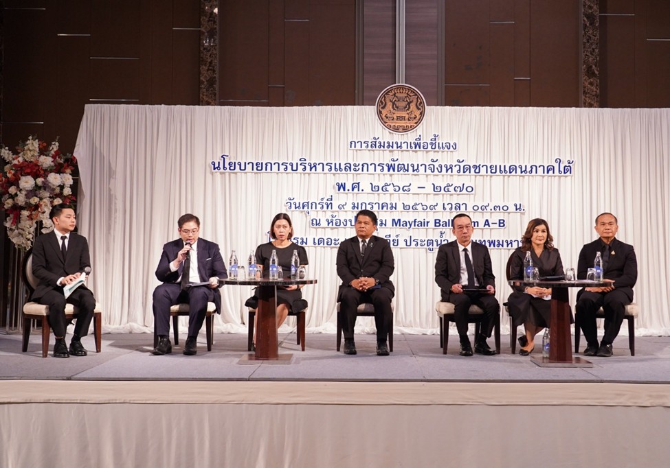 เลขาธิการสภาความมั่นคงแห่งชาติ เป็นประธานเปิดการสัมมนาเพื่อชี้แจงนโยบายการบริหารและการพัฒนาจังหวัดชายแดนภาคใต้ พ.ศ. ๒๕๖๘ – ๒๕๗๐ เมื่อวันที่ ๙ มกราคม ๒๕๖๙ เวลา ๐๙.๓๐ น. ณ โรงแรม เดอะ เบอร์เคลีย์ ประตูน้ำ กรุงเทพฯ โดยมี พลเอก สมศักดิ์ รุ่งสิตา หัวหน้าคณะพูดคุยสันติสุขจังหวัดชายแดนภาคใต้ พลเอก อุดมชัย ธรรมสาโรรัชต์ ประธานกรรมการผู้แทนพิเศษของรัฐบาลฯ และผู้แทนหน่วยงานที่เกี่ยวข้องมากกว่า ๘๐ หน่วยงานเข้าร่วมการสัมมนาในครั้งนี้