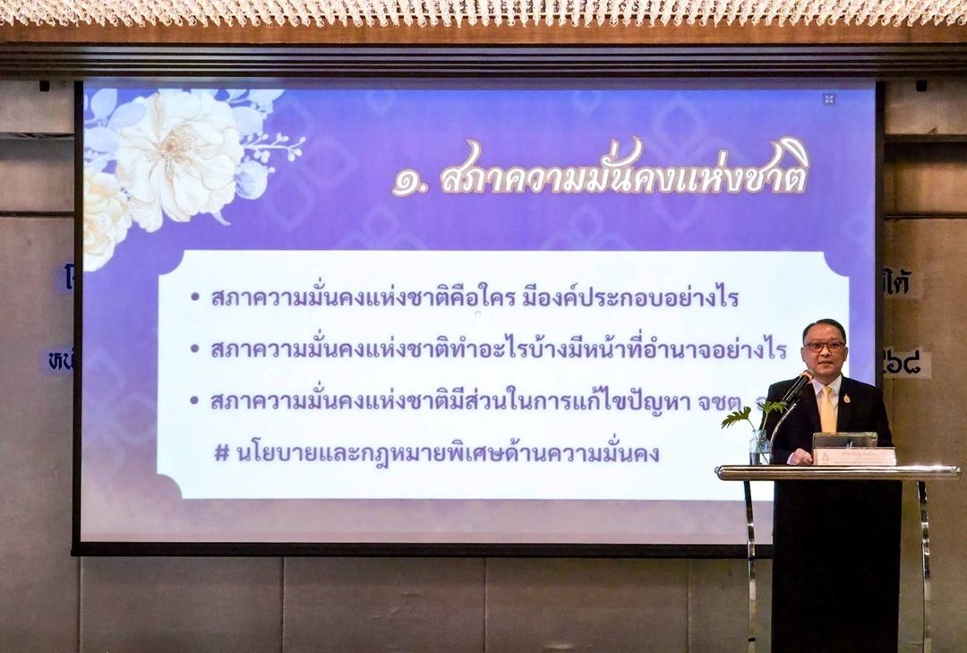 นายวรณัฐ คงเมือง รองเลขาธิการสภาความมั่นคงแห่งชาติ ลงพื้นที่ จชต. เพื่อบรรยายพิเศษในโครงการยกระดับประสิทธิภาพการดำเนินคดีความมั่นคงในพื้นที่ จชต. หัวข้อ “มุมมอง สมช. ต่อกระบวนการยุติธรรมในพื้นที่ จชต.” เมื่อวันที่ ๒๐ สิงหาคม ๒๕๖๘