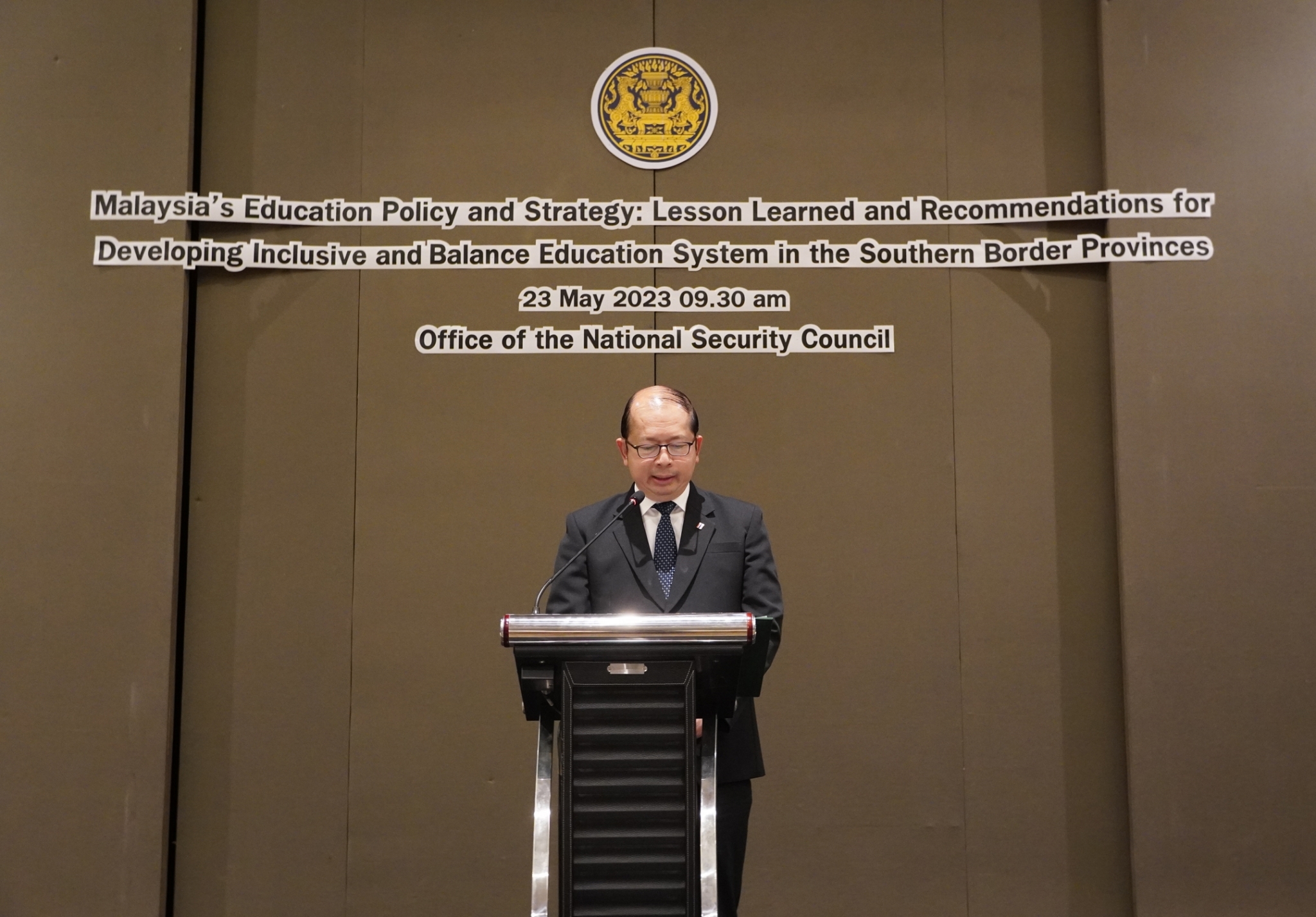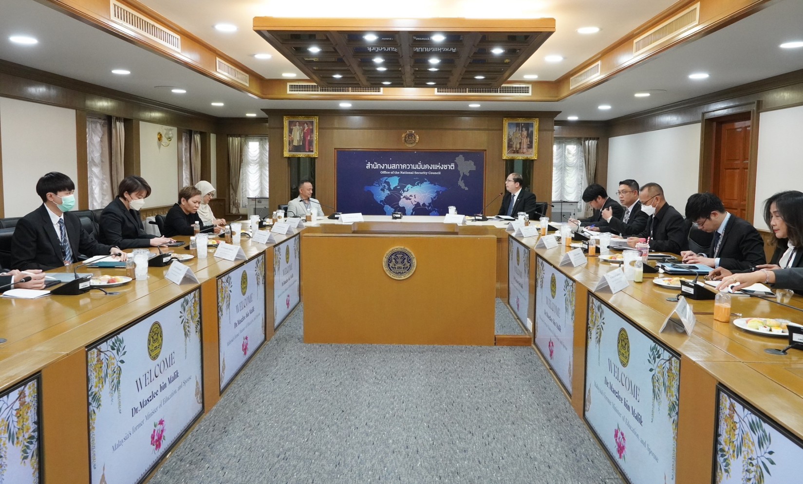 ๒. การประชุมหารือแลกเปลี่ยนมุมมองต่อการแก้ไขปัญหาจังหวัดชายแดนภาคใต้ เมื่อวันจันทร์ที่ ๒๒ พฤษภาคม ๒๕๖๖ เวลา ๑๐.๓๐ น. ณ ห้องประชุมวิจิตรวาทการ โดยมี นายฉัตรชัย บางชวด รองเลขาธิการสภาความมั่นคงแห่งชาติ เป็นประธาน ซึ่งที่ประชุมได้แลกเปลี่ยนมุมมองและแนวคิดต่อการแก้ไขปัญหาจังหวัดชายแดนภาคใต้ โดยเฉพาะการยกระดับการศึกษาของมาเลเซียให้พร้อมต่อการพัฒนาประเทศ ตั้งแต่ในระดับประถมศึกษา ไปจนถึงขั้นอุดมศึกษา รวมทั้งให้ความสำคัญต่อมาตรฐานการสอนในโรงเรียนเอกชน โรงเรียนรัฐ โรงเรียนอาชีวะ และสถาบันศึกษาปอเนาะในมาเลซีย นอกจากนี้ ยังมีการแลกเปลี่ยนประเด็นการเตรียมความพร้อมประชาชนให้รู้เท่าทันกับบริบทความเปลี่ยนแปลงของโลกและสามารถอยู่ร่วมกันอย่างสันติสุขภายใต้สังคมพหุวัฒนธรรม รวมทั้งท่าน ดร.มาสลีย์ฯ ยังได้แบ่งปันประสบการณ์ของมาเลเซียในการนำเทคโนโลยีเข้ามายกระดับการศึกษา โดยเฉพาะการใช้ปัญญาประดิษฐ์ (Artificial Intelligence: AI) และข้อมูลขนาดใหญ่ (Big Data) มาใช้ในการวิเคราะห์ศักยภาพและพรสวรรค์ของผู้เรียนรายบุคคลเพื่อกำหนดหลักสูตรที่ตรงกับผู้เรียน