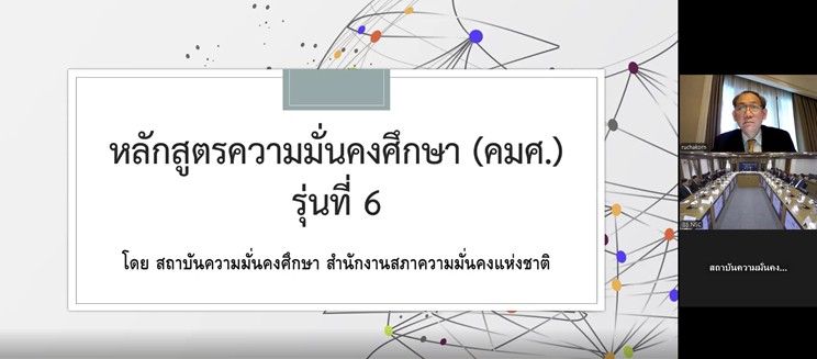สถาบันความมั่นคงศึกษา สำนักงานสภาความมั่นคงแห่งชาติ (สมศ.สมช.) ได้จัดพิธีเปิดการฝึกอบรมหลักสูตรความมั่นคงศึกษา (ระดับต้น) รุ่นที่ ๖ ในวันศุกร์ที่ ๒๘ กุมภาพันธ์ ๒๕๖๘ ณ ห้องประชุมวิจิตรวาทการสำนักงานสภาความมั่นคงแห่งชาติ โดยมีนายรัชกรณ์ นภาพรพิพัฒน์ รองเลขาธิการสภาความมั่นคงแห่งชาติ เป็นประธานในพิธีเปิด มีจำนวนผู้เข้าร่วมอบรม ทั้งหมด ๒๓ คน จาก หน่วยงาน ๒๐ หน่วยงาน