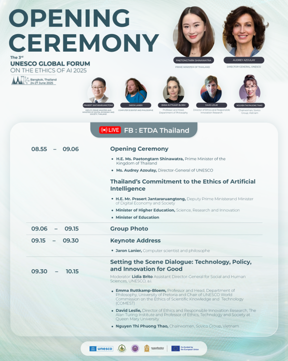 🔴25 มิถุนายน เวลา 08.55 น.เป็นต้นไป เตรียมพบกับ LIVE ถ่ายทอดสดพิธีเปิดสุดยิ่งใหญ่! ‘Opening ceremony: The 3rd UNESCO Global Forum on the Ethics of AI 2025’