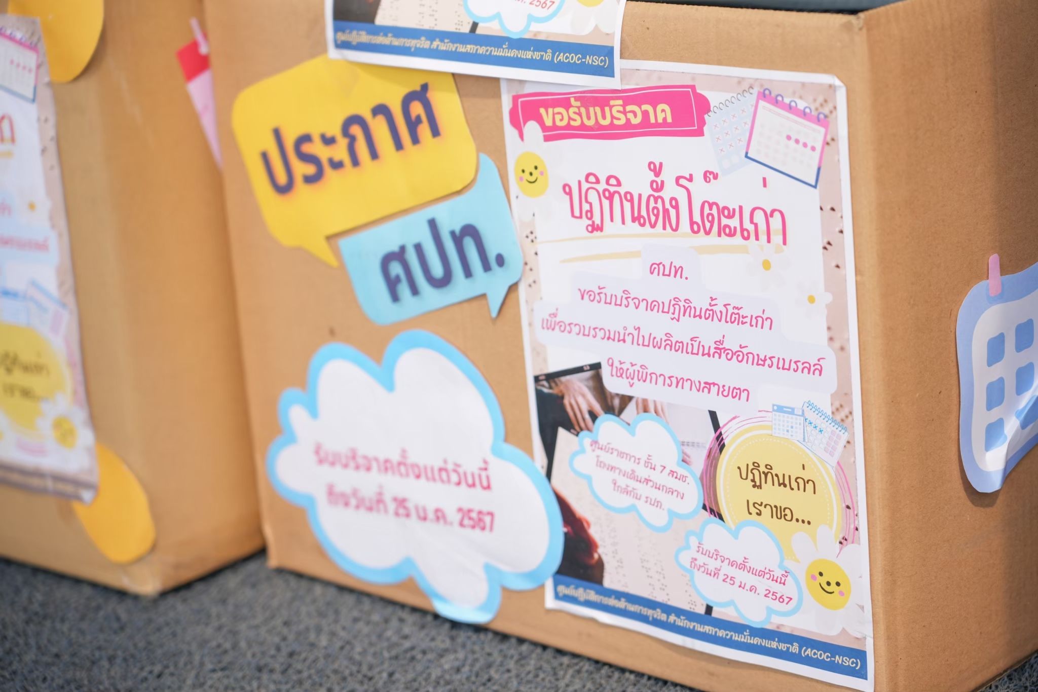 เมื่อวันที่ 30 มกราคม 2567 นางสาวกัญจบุญย์ บุณยรักษ์ รองหัวหน้าศูนย์ปฏิบัติการต่อต้านการทุจริตพร้อมผู้แทนจากกองความมั่นคงภายในประเทศ (กภน.) ศูนย์เทคโนโลยีสารสนเทศและการสื่อสาร (ศทส.) กลุ่มตรวจสอบภายใน (กตส.) และกลุ่มงานบริหารพัสดุ อาคารสถานที่ และยานพาหนะ สำนักงานเลขาธิการ (พอย.สลก.) ได้นำปฏิทินเก่าที่ได้รับบริจาคจากเจ้าหน้าที่ในสำนักงานสภาความมั่นคงแห่งชาติมอบให้กับสมาคมส่งเสริมความปลอดภัยและอนามัยในการทำงาน (ประเทศไทย)ในพระราชูปถัมภ์ฯ เพื่อนำไปผลิตสื่ออักษรเบรลล์สำหรับผู้พิการทางสายตาได้ใช้ในการพัฒนาทักษะการอ่านและการเรียนรู้ภายใต้ “โครงการปฏิทินปันสุข SHAWPAT ส่งรัก ผ่านอักษรเบรลล์ ปี 4”โดยกิจกรรมในครั้งนี้ มีวัตถุประสงค์เพื่อส่งเสริมการเสียสละและแบ่งปันแก่ผู้อื่น รวมทั้งเป็นการสร้างเครือข่ายการบำเพ็ญประโยชน์ร่วมกับภาคส่วนอื่น ๆ ในสังคม