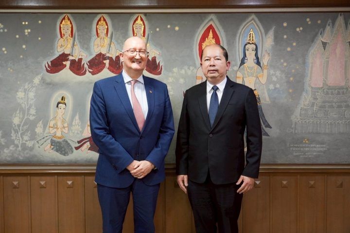 On August 19, 2025, H.E. Mr. David Daly, Ambassador of the European Union to Thailand, paid a farewell courtesy call on Mr. Chatchai Bangchaud, Secretary-General of the National Security Council of Thailand, as his mission in Thailand came to an end. On this occasion, Mr. Bangchaud and Mr. Daly exchanged information and views on several security topics, such as the Thai-Cambodia border dispute, situation in the Southern Border Provinces, Myanmar, and future security cooperation between Thailand and the European Union.