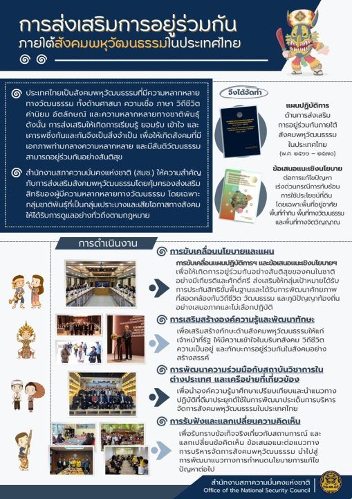 นอกจากนี้ ในคราวการประชุมสภาความมั่นคงแห่งชาติ ครั้งที่ ๑๒/๒๕๖๘ เมื่อวันที่ ๒ ตุลาคม ๒๕๖๘ โดยมี นายกรัฐมนตรี ในฐานะประธานสภาความมั่นคงแห่งชาติ เป็นประธาน ได้เห็นชอบจุดเน้นและแนวทางการขับเคลื่อนงาน ในปีงบประมาณ พ.ศ. ๒๕๖๙ – ๒๕๗๐ ภายใต้นโยบายดังกล่าวที่ครอบคลุมประเด็นนโยบายในทุกมิติ โดยกำหนดบทบาทหน่วยงานเจ้าภาพวัตถุประสงค์ภายใต้นโยบายดังกล่าวทั้ง สมช. กอ.รมน. ศอ.บต. ยธ. ศธ. และ กปส. เพื่อร่วมกำกับติดตามและประเมินผลการดำเนินงานของหน่วยงานที่เกี่ยวข้องให้เป็นไปตามเป้าหมายของนโยบายฯ โดยคำนึงถึงประโยชน์สูงสุดของประชาชนเป็นสำคัญ