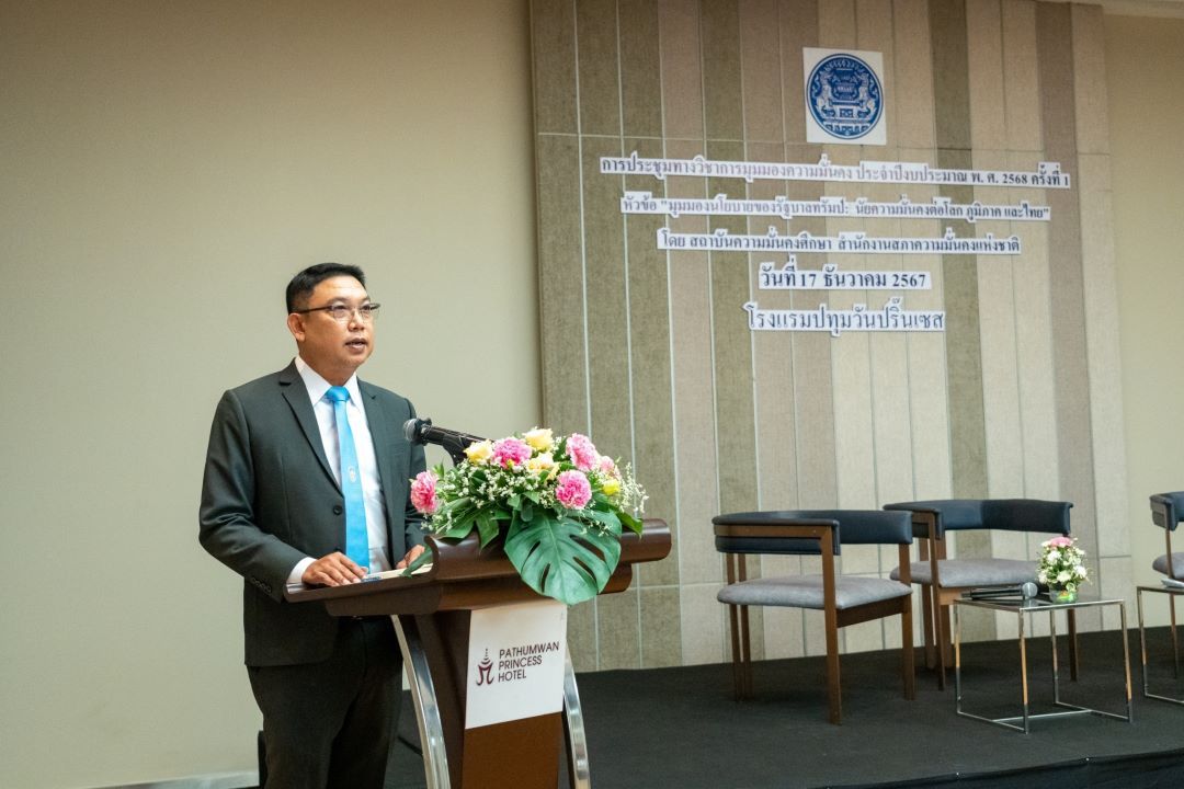 เมื่อวันอังคารที่ ๑๗ ธันวาคม ๒๕๖๗ เวลา ๐๙.๐๐ – ๑๕.๐๐ น. สถาบันความมั่นคงศึกษา สำนักงานสภาความมั่นคงแห่งชาติ ได้จัดการประชุมทางวิชาการฯ หัวข้อ “มุมมองนโยบายของรัฐบาลทรัมป์: นัยความมั่นคงต่อโลก ภูมิภาค และไทย”ณ ห้องประชุมจามจุรี ๑ ชั้น M โรงแรมปทุมวัน ปริ้นเซส กรุงเทพฯ และการสัมมนาทางไกลผ่านระบบอิเล็กทรอนิกส์ (Zoom Webinar) โดยมี นายภพหล้า ปิยะปานันท์ รักษาการในตำแหน่งที่ปรึกษาด้านนโยบายและยุทธศาสตร์ความมั่นคง เป็นประธาน โดยมีผู้เข้าร่วมการประชุมทางวิชาการฯ ประกอบด้วย ๑) หน่วยงานภาควิชาการ ๒) หน่วยงานภาครัฐ และภาคส่วนที่เกี่ยวข้อง