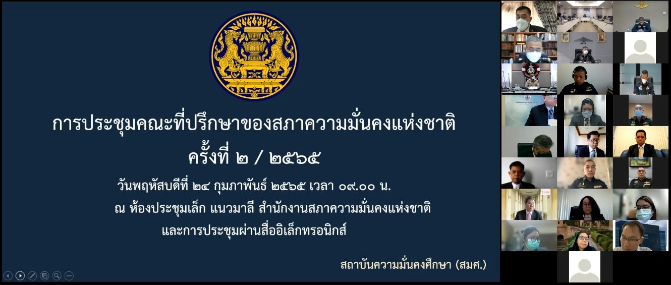 เมื่อวันพฤหัสบดีที่ ๒๔ กุมภาพันธ์ ๒๕๖๕ สถาบันความมั่นคงศึกษา สมช. ได้จัดการประชุมคณะที่ปรึกษาของสภาความมั่นคงแห่งชาติ ครั้งที่ ๒/๒๕๖๕ โดยมีนายประกิจ ประจนปัจจนึก ประธานที่ปรึกษาฯ เป็นประธาน เพื่อรับทราบ