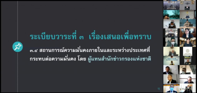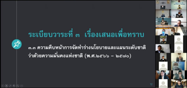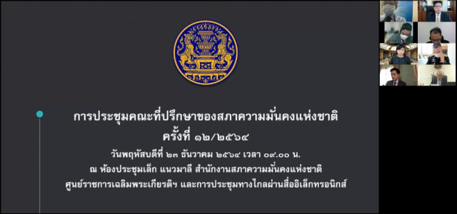 ความมั่นคงแห่งชาติ ประธานอนุกรรมการ เป็นประธาน ณ ห้องประชุมเล็ก แนวมาลี สำนักงานสภาความมั่นคงแห่งชาติ ศูนย์ราชการเฉลิมพระเกียรติฯ และการประชุมทางไกลผ่านสื่ออิเล็กทรอนิกส์(ระบบ Zoom)