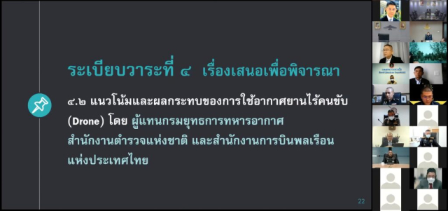 ๒) แนวโน้มและผลกระทบของการใช้อากาศยานไร้คนขับ (Drone) โดย ผู้แทนสำนักงานตำรวจแห่งชาติ กรมยุทธการทหารอากาศ และสำนักงานการบินพลเรือนแห่งประเทศไทย