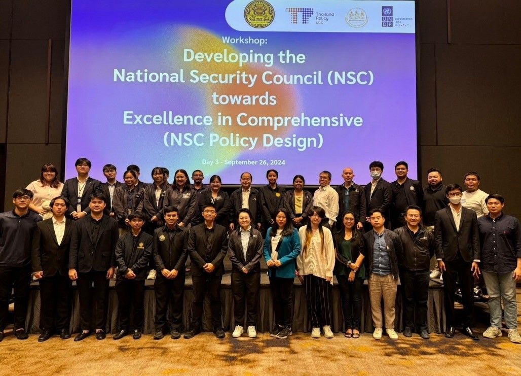 สมช. ได้จัดการประชุมเพื่อพัฒนา สมช. สู่ความเป็นเลิศด้านการบริหารจัดการความมั่นคงแบบองค์รวม (NSC Policy Design) ระหว่างวันที่ ๒๔ – ๒๖ กันยายน ๒๕๖๗ ณ โรงแรมโอโซ่ นอร์ธ พัทยา จ.ชลบุรี และผ่านการประชุมทางไกลผ่านสื่ออิเล็กทรอนิกส์ (โปรแกรม Zoom Cloud Meeting) โดยมี นายรัชกรณ์ นภาพรพิพัฒน์ รองเลขาธิการสภาความมั่นคงแห่งชาติ เป็นประธาน โดยมีความมุ่งหมายเพื่อพัฒนาแนวคิดและเครื่องมือการออกแบบทางนโยบาย (Policy Design) บนพื้นฐานของกระบวนการออกแบบนโยบาย (Policy Process) เพื่อนำไปสู่การพัฒนาและต่อยอดนวัตกรรมเชิงนโยบาย (Policy Innovation) รองรับการจัดทำนโยบายและแผนระดับชาติว่าด้วยความมั่นคงแห่งชาติฉบับใหม่ และเป็นการเสริมสร้างความรู้และความเข้าใจต่อแนวทางการดำเนินนโยบายความมั่นคงของประเทศ โดยมีผู้แทนส่วนราชการ ได้แก่ กระทรวงกลาโหม กระทรวงการต่างประเทศ กองอำนวยการรักษาความมั่นคงภายในราชอาณาจักร สำนักข่าวกรองแห่งชาติ และสำนักงานคณะกรรมการการเลือกตั้ง และหน่วยงานภายใน สมช. เข้าร่วมการประชุมฯ