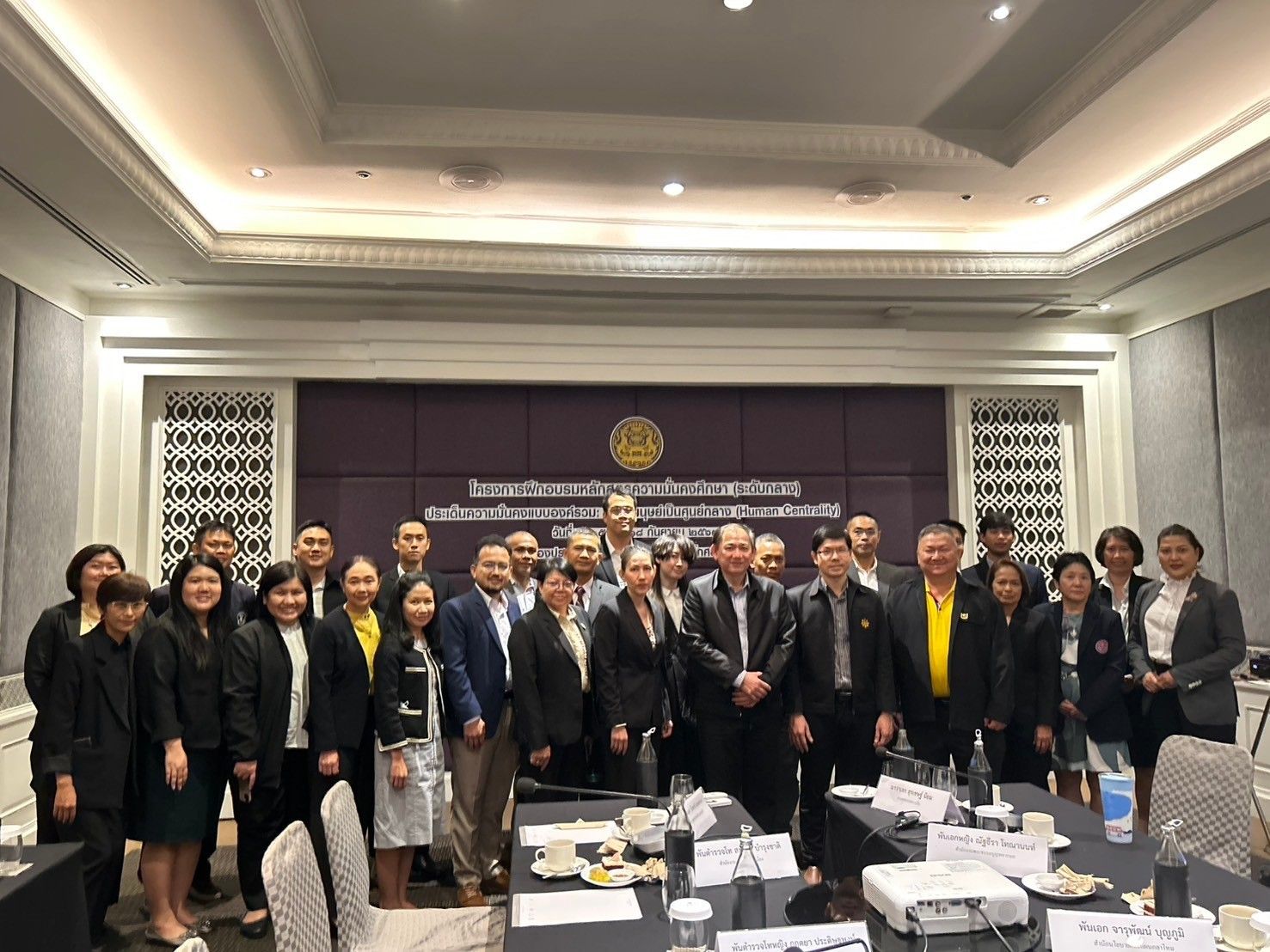 โครงการฝึกอบรมฯ มีวัตถุประสงค์เพื่อเสริมสร้างองค์ความรู้ด้านความมั่นคงเกี่ยวกับกรอบแนวคิดความมั่นคงแบบองค์รวม ในมิติความมั่นคงของมนุษย์ ส่งเสริมการประยุกต์ใช้หลักการมีมนุษย์เป็นศูนย์กลางในการกำหนดประเด็นและจัดทำแนวทางการดำเนินภารกิจด้านความมั่นคง และเสริมสร้างประสิทธิภาพของผู้ปฏิบัติภารกิจด้านนโยบาย ยุทธศาสตร์ และแผนงานจากหน่วยงานที่เกี่ยวข้องในการร่วมแลกเปลี่ยนเรียนรู้ด้วยความเข้าใจเดียวกัน ประกอบด้วย ๕ หัวข้อวิชา คือ ๑) บทบาทของสำนักงานสภาความมั่นคงแห่งชาติตามหลัก “การมีมนุษย์เป็นศูนย์กลาง” ๒) แนวคิดและความท้าทายด้านความมั่นคงของมนุษย์ในประเทศไทย ๓) สิทธิมนุษยชนและกฎหมายที่ควรพิจารณาสำหรับผู้จัดทำและขับเคลื่อนนโยบาย ยุทธศาสตร์และแผนงานความมั่นคง ๔) ความสัมพันธ์ระหว่างหลักการของกฎหมายมนุษยธรรมระหว่างประเทศกับกฎหมายด้านสิทธิมนุษยชนของไทยในภารกิจด้านความมั่นคง และ ๕) ศักยภาพของกลไกการบริหารจัดการความมั่นคงแบบองค์รวมตามหลัก “การมีมนุษย์เป็นศูนย์กลาง” และกรณีศึกษาการทำงานร่วมกันของรัฐไทยในการต่อต้านการค้ามนุษย์