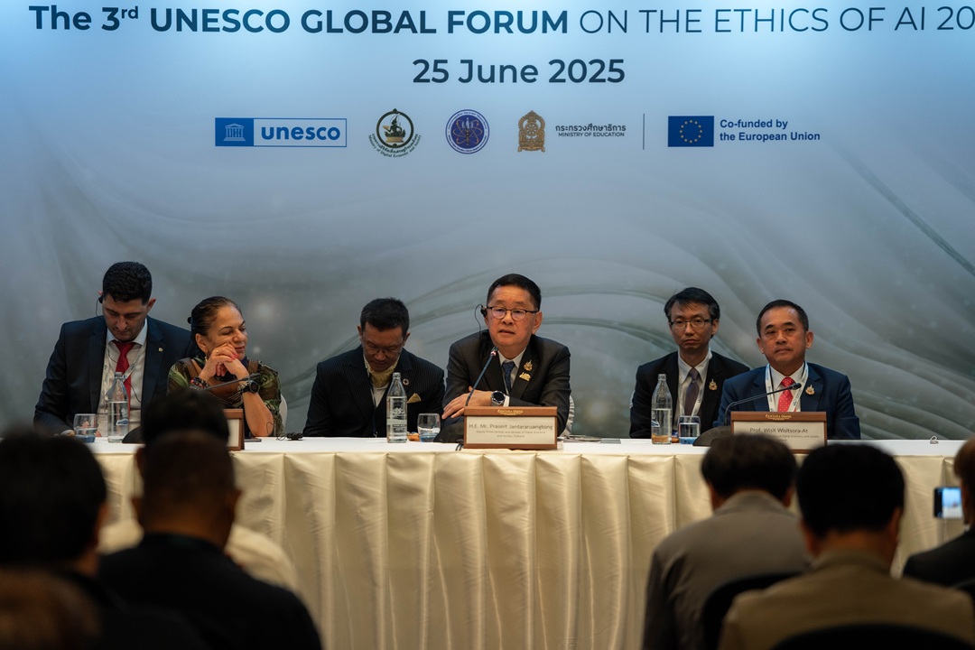 กรุงเทพฯ, 28 มิถุนายน 2568 – ประเทศไทยประสบความสำเร็จอย่างยิ่งใหญ่ในการเป็นเจ้าภาพจัดการประชุมระดับโลก “The 3rd UNESCO Global Forum on the Ethics of AI 2025 (GFEAI 2025)” ระหว่างวันที่ 24–27 มิถุนายน 2568 ณ โรงแรมเซ็นทาราแกรนด์ เซ็นทรัลเวิลด์ กรุงเทพมหานคร โดยมีผู้นำ นักวิชาการ และผู้แทนจากกว่า 100 ประเทศทั่วโลก มากกว่า 1,000 คน ร่วมแลกเปลี่ยนมุมมองและออกแบบทิศทางการพัฒนา AI ที่มี “จริยธรรม โปร่งใส และยั่งยืน” พร้อมเปิดฉากเดินหน้าศูนย์ AI Governance Practice Center (AIGPC) ดันไทยสู่ศูนย์กลางจริยธรรม AI ระดับภูมิภาค ภายใต้การนำของ นางสาวแพทองธาร ชินวัตร นายกรัฐมนตรี และนายประเสริฐ จันทรรวงทอง รองนายกรัฐมนตรีและรัฐมนตรีว่าการกระทรวงดิจิทัลเพื่อเศรษฐกิจและสังคม